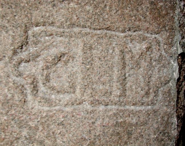Inscriptions gravées sur la porte d'entrée : G L MImmatriculation