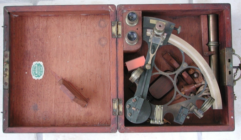 Vue du sextant dans sa boîte ouverteImmatriculation