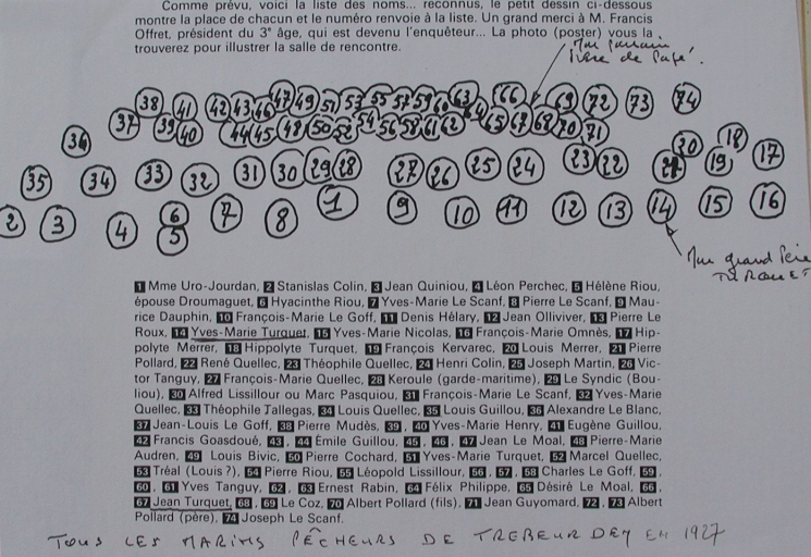 Liste nominative des marins-pêcheurs de Trébeurden invités à l'Hôtel de la Plage par Uro Jourdan en 1927 (collection particulière)Immatriculation