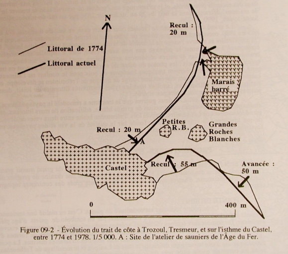 Evolution du trait de côte de Trozoul, Tresmeur et l'isthme du Castel (SMVM Baie de Lannion, Pinot, 1993)Immatriculation