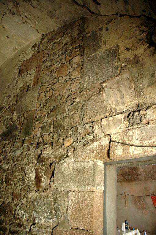 Vue de l'intérieur de la caserne de l'île aux Moines : palier, porte murée desservant autrefois les comblesImmatriculation