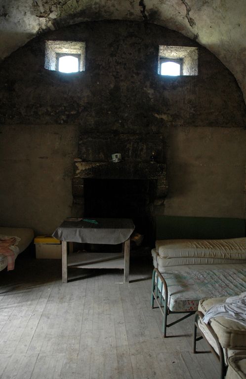 Vue de l'intérieur de la caserne de l'île aux Moines : casernement voûté ouest doté d'une cheminéeImmatriculation