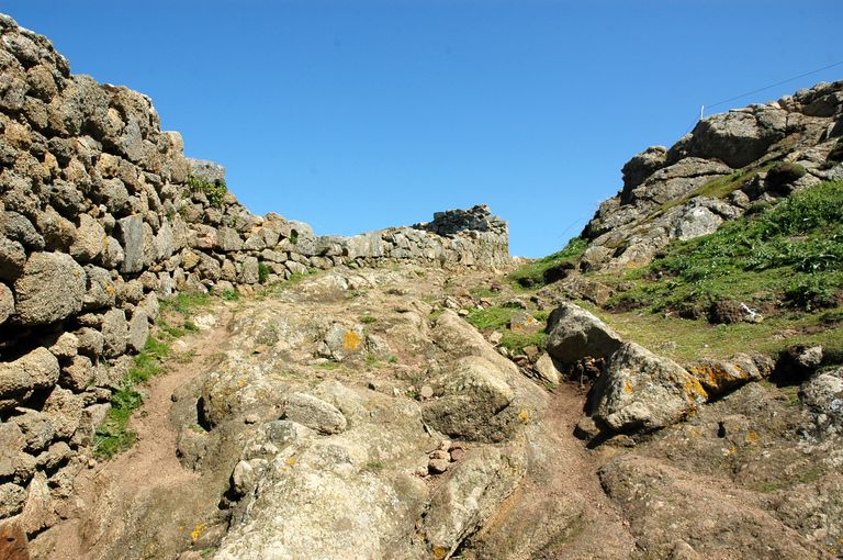 Vue du mur d'enceinte de la redoute, réduit de l'île aux Moines percé de créneaux de fusilladeImmatriculation