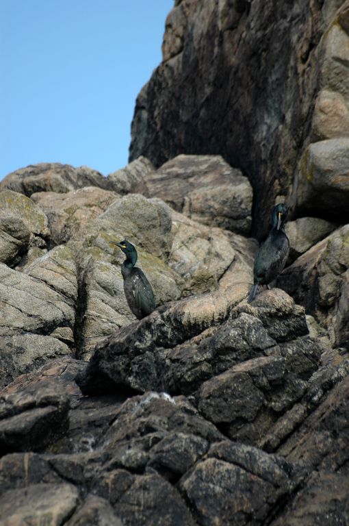 Vue d'un couple de cormorans sur un rocherImmatriculation