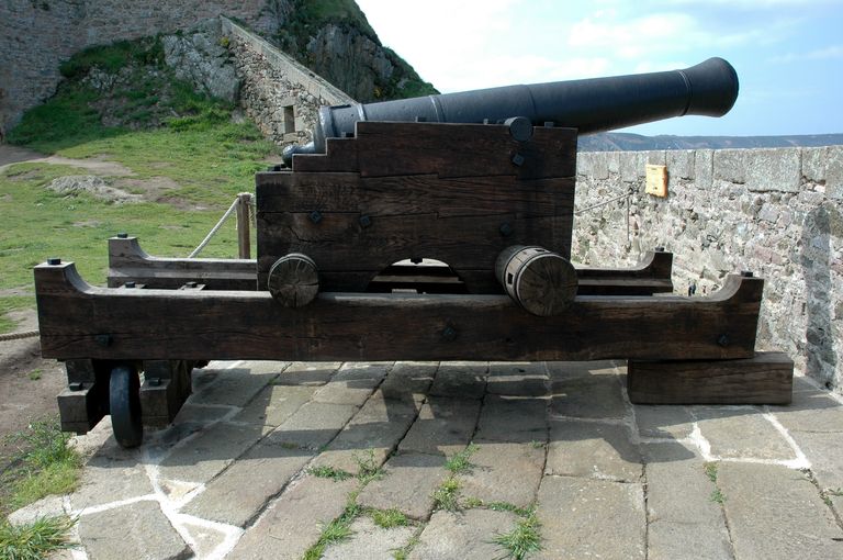 Vue du Fort La Latte : reconstitution d'un canon sur affût à châssis pivotant type GribeauvalImmatriculation