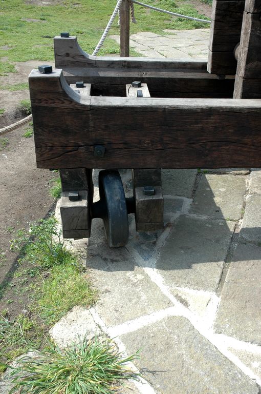 Vue du Fort La Latte : reconstitution d'un canon sur affût à châssis pivotant type Gribeauval. RouletteImmatriculation