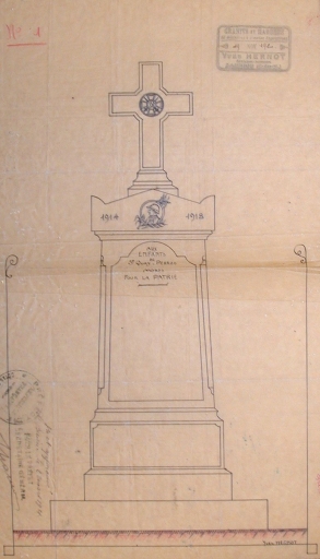 Projet de monument aux morts, par Yves Hernot sculpteur, daté du 19 novembre 1920 (AD 22)Immatriculation