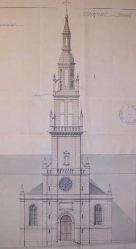 Plan de l'église paroissiale, élévation est, par l'architecte diocésain Eugène Le Guerrannic, le 20 avril 1893 (AD 22)Immatriculation