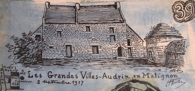 Vue générale, d'après croquis du vicomte Henri Frotier de La Messelière, 3 septembre 1917 (AD 22)Immatriculation