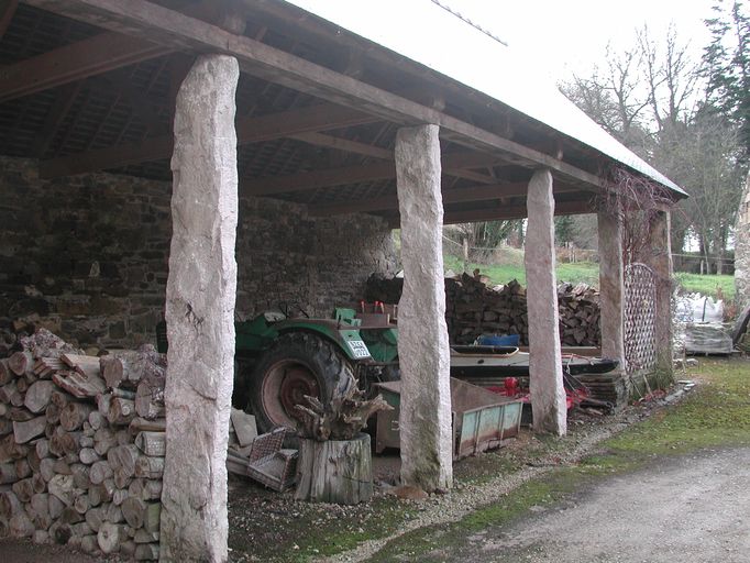 Vue de la grange Est de la maison noble de Saline avec ses piliers en grès d'ErquyImmatriculation