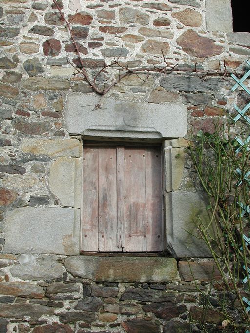 Vue de détail d'une ouverture de la maison noble de Saline : remarquer les pierres d'angle et le linteau chanfreiné (pierres taillées en garnite)Immatriculation