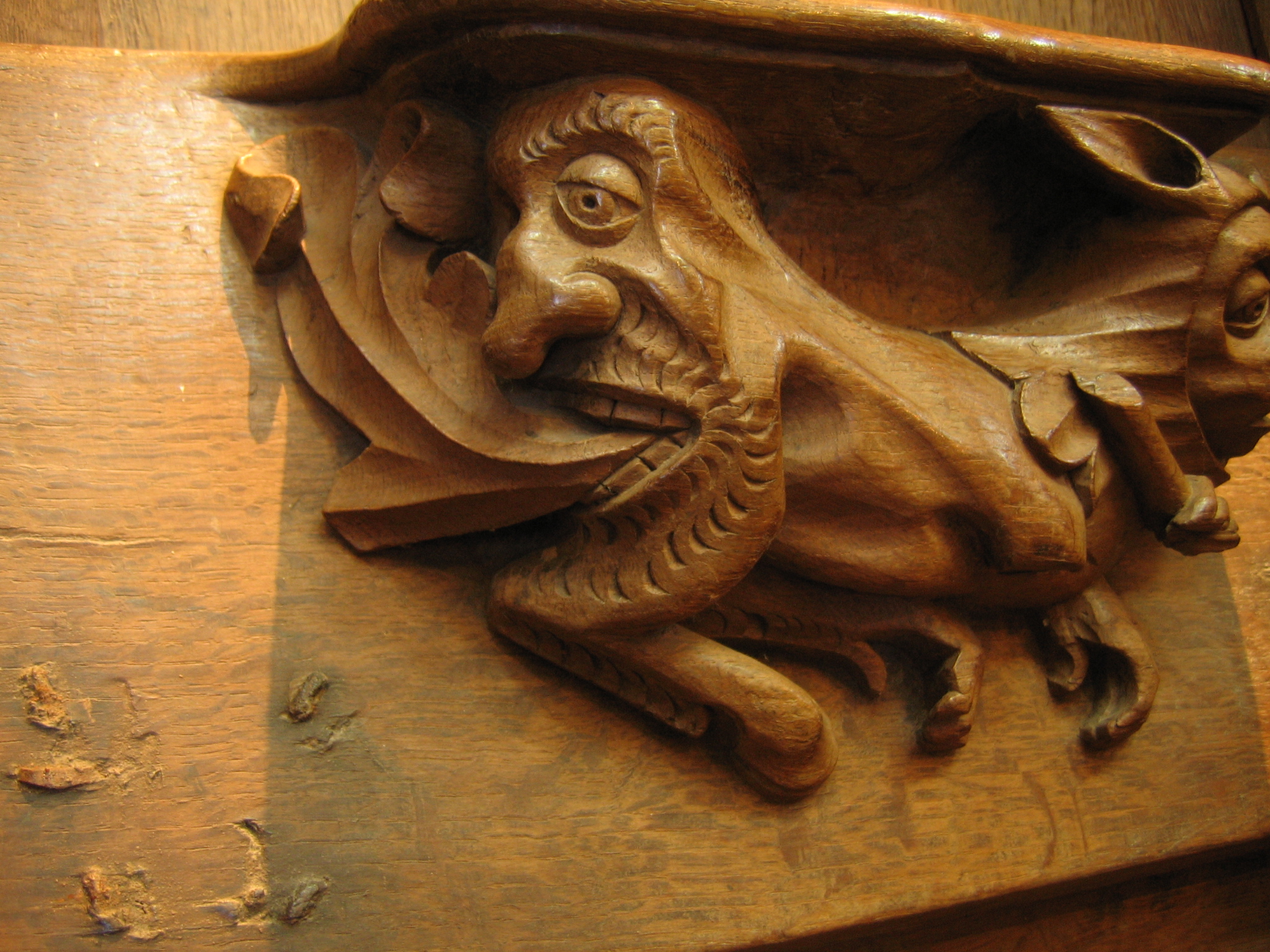 Miséricode : détail de la tête située sur l'arrière-trainImmatriculation