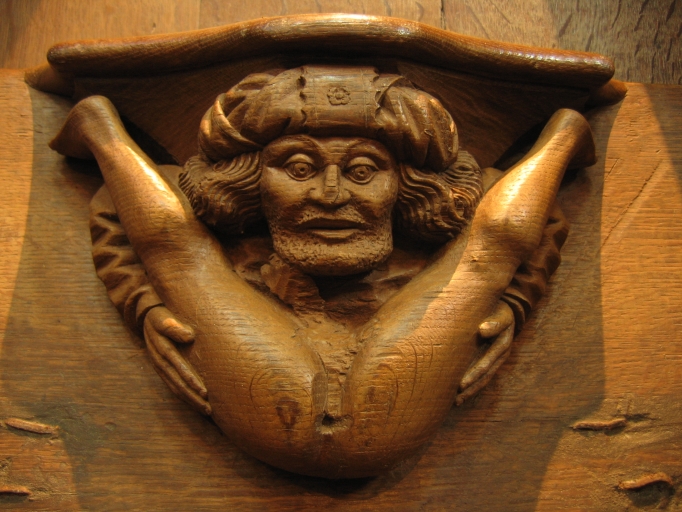 Tréguier, cathédrale Saint Tugdual : les sujets grossiers ne sont pas absents des stalles à l'image de ce sodomite aujourd'hui émasculéImmatriculation