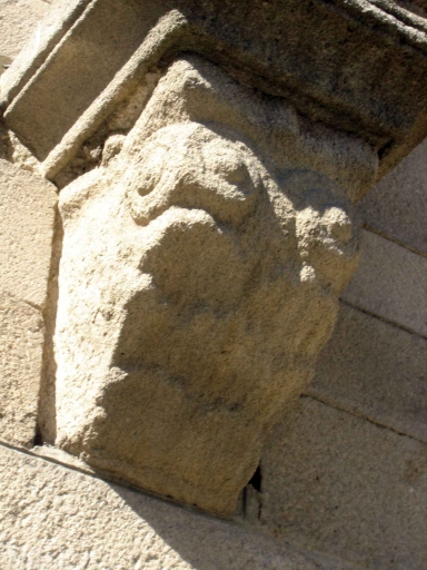 Façade sud, registre inférieur : console sculptée recevant la retombée des arcades aveuglesImmatriculation