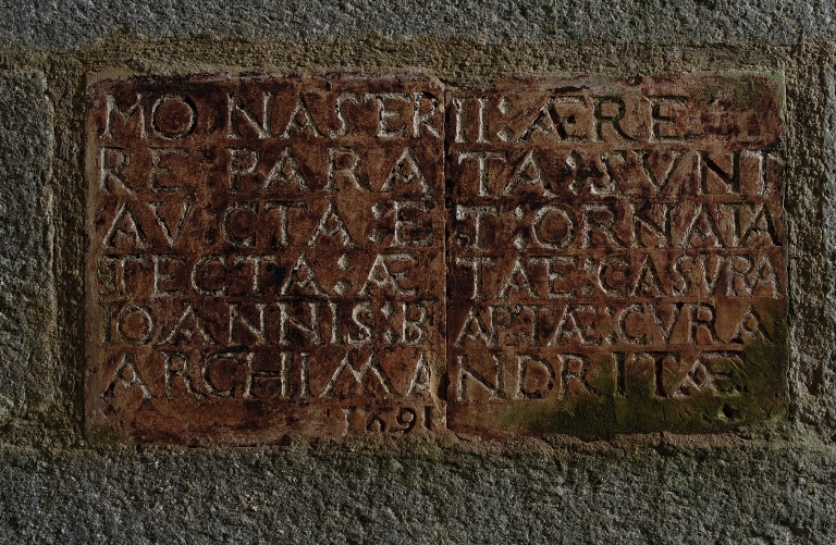 Eglise. Intérieur, bras nord du transept, mur nord, inscriptionImmatriculation