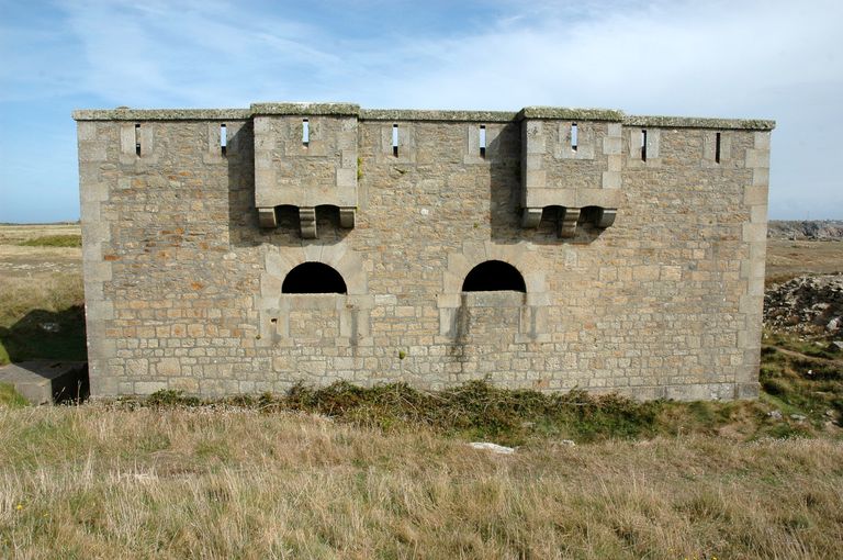 Corps de garde crénelé n° 3, année "1862" et batterie de Locqueltas (Ouessant),