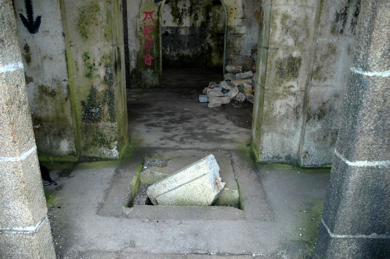 Vue du réduit de batterie de côte de Loqueltas, passage de l'entrée et citerne (sous-sol)Immatriculation