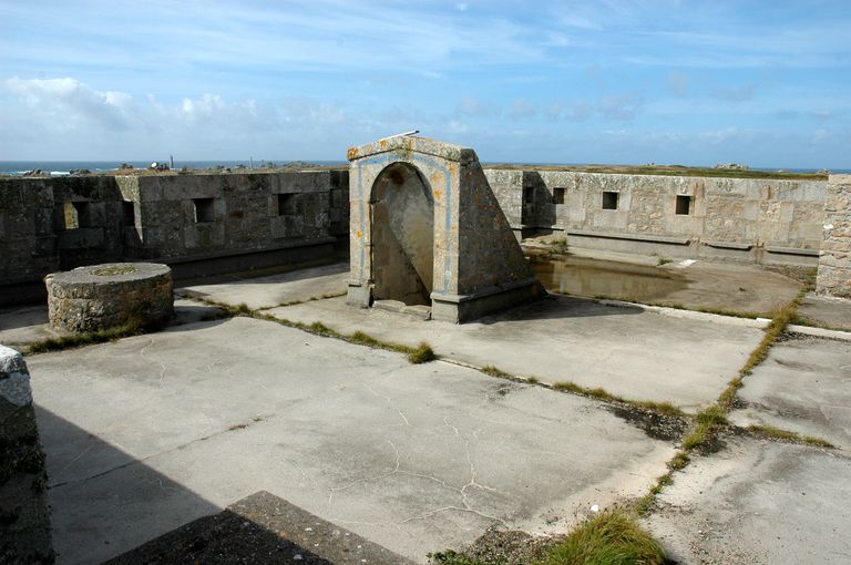 Corps de garde crénelé n° 3, année "1862" et batterie de Locqueltas (Ouessant),
