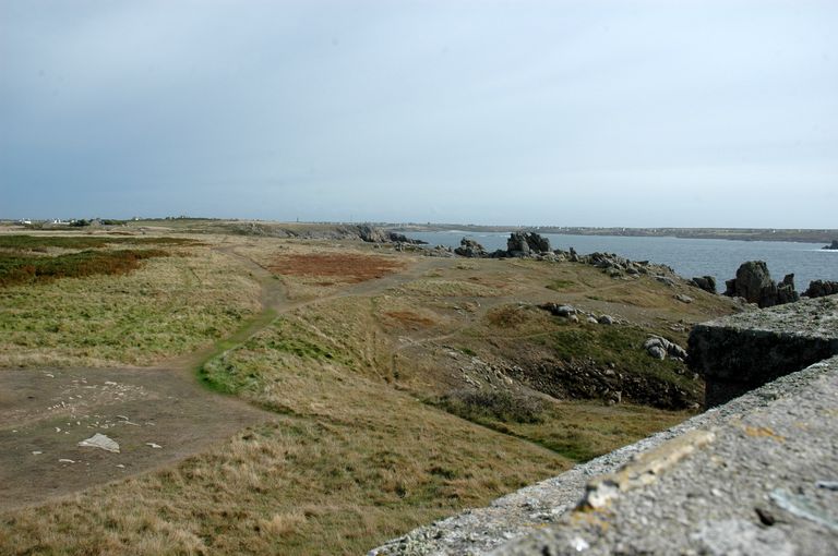Vue du réduit de batterie de côte de Loqueltas. La terrasse est dotée de huit bretèches et créneaux de fusillade flanquant les approches du réduitImmatriculation