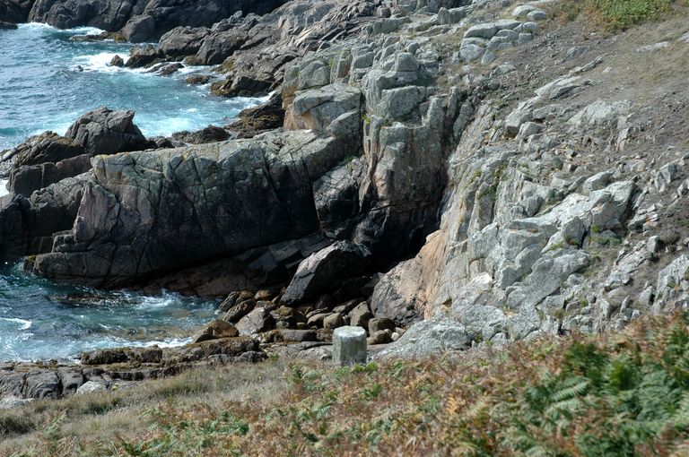 Corps de garde crénelé n° 3, année "1862" et batterie de Locqueltas (Ouessant),