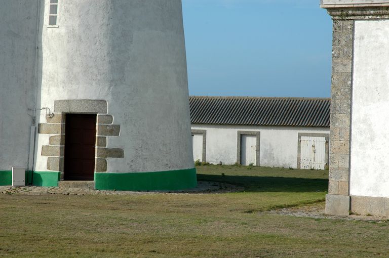 Vue du phare du Stiff, ouvrage tronconique : tourelle à demi hors oeuvre regroupant entrée et escalier à visImmatriculation