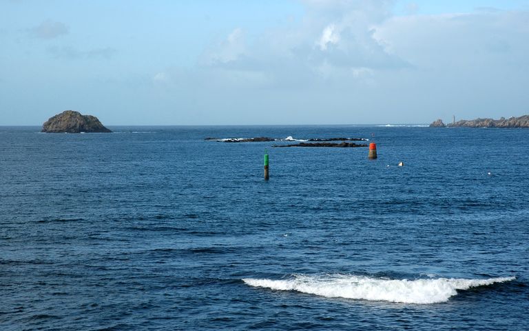 Vue de l'ensemble fortifié situé au nord de la plage de Corz, la baie de Lampaul et le rocher du KorzImmatriculation
