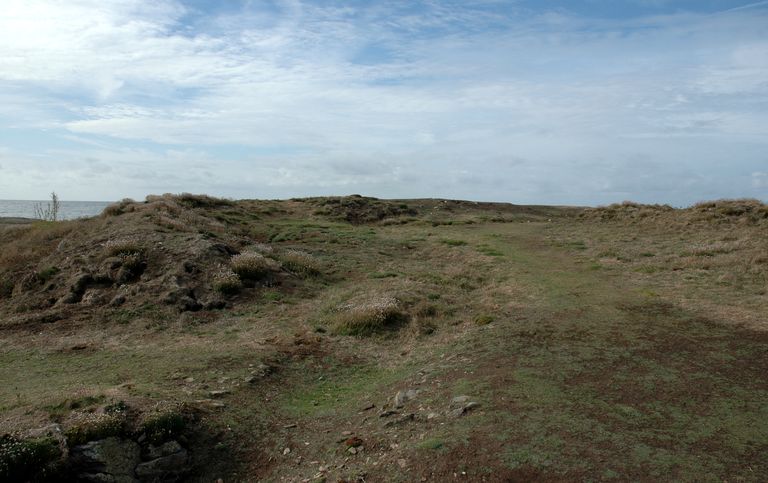 Vue de l'ensemble fortifié de Penn ar Viler, parapet en terre de l'ancienne batterie de côte (18e siècle)Immatriculation