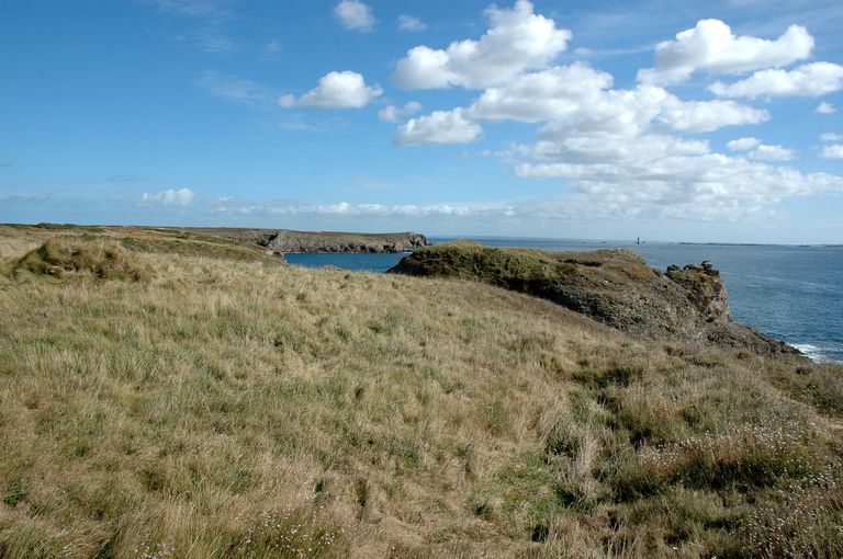 Batterie de côte (en équerre), corps de garde et magasin à poudre (détruits) de Porsguen (Ouessant),