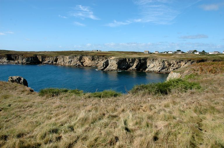 Batterie de côte (en équerre), corps de garde et magasin à poudre (détruits) de Porsguen (Ouessant),
