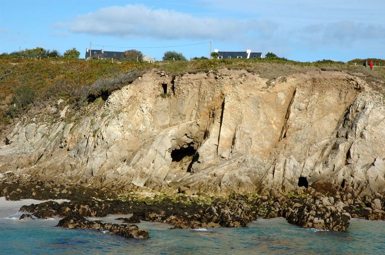 Vue de situation de la batterie de côte de Porz ar Land, poste d'observation et de mitrailleuse camouflé dans le flanc de la falaiseImmatriculation
