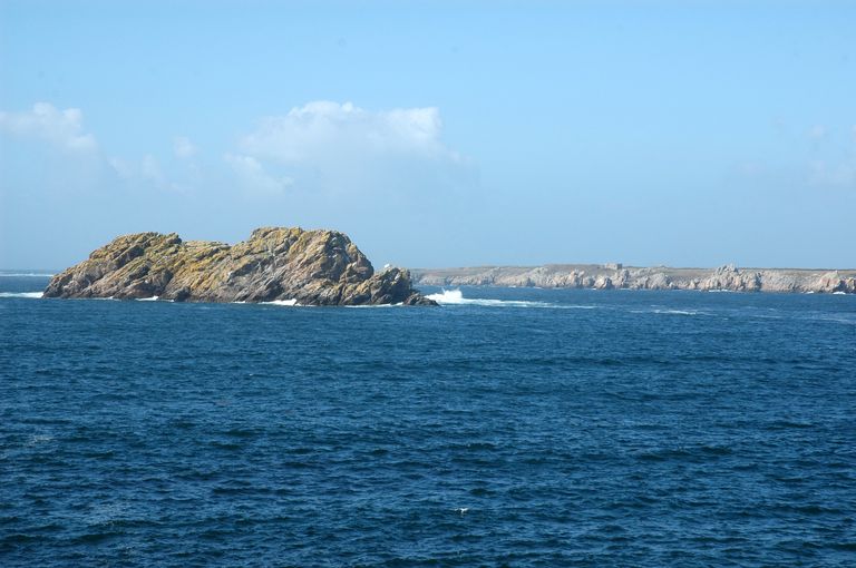 Vue du chemin côtier de la plage du Corz à Porz Goret, rocher du CorceImmatriculation
