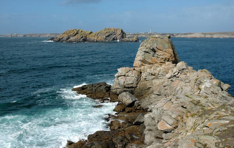 Vue du chemin côtier de la plage du Corz à Porz Goret, rocher du CorceImmatriculation