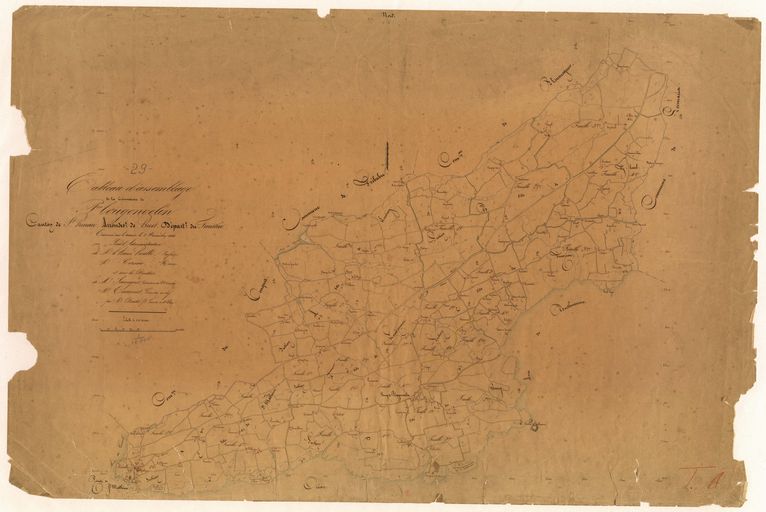 Extrait du tableau d'assemblage du cadastre ancien de la commune de Plougonvelin, 1841, Archives Départementales du FinistèreImmatriculation