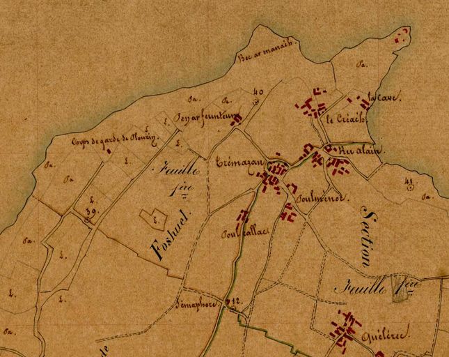 Extrait du tableau d'assemblage de la commune de Landunvez, 2e quart 19e siècle, Archives Départementales du FinistèreImmatriculation