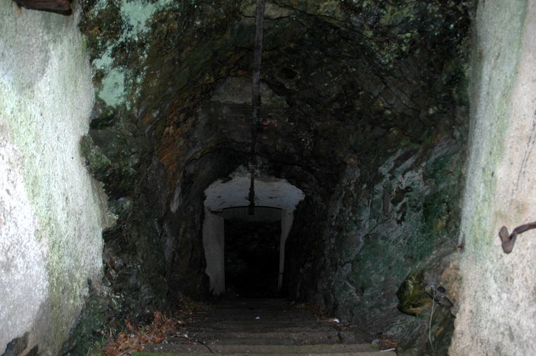 Vue de la batterie haute Robert : escaliers d'accès au magasin sous rocImmatriculation