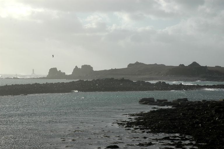 Vue des abords de l'anse d'Argenton. En arrière-plan : l'île d'Yoc'h et le Phare du FourImmatriculation