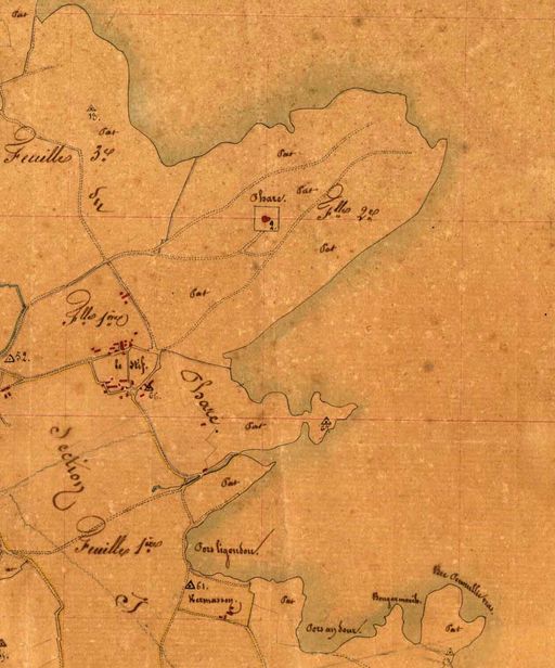 Extrait du tableau d'assemblage du cadastre ancien de la commune d'Ouessant, 1842, Archives Départementales du FinistèreImmatriculation