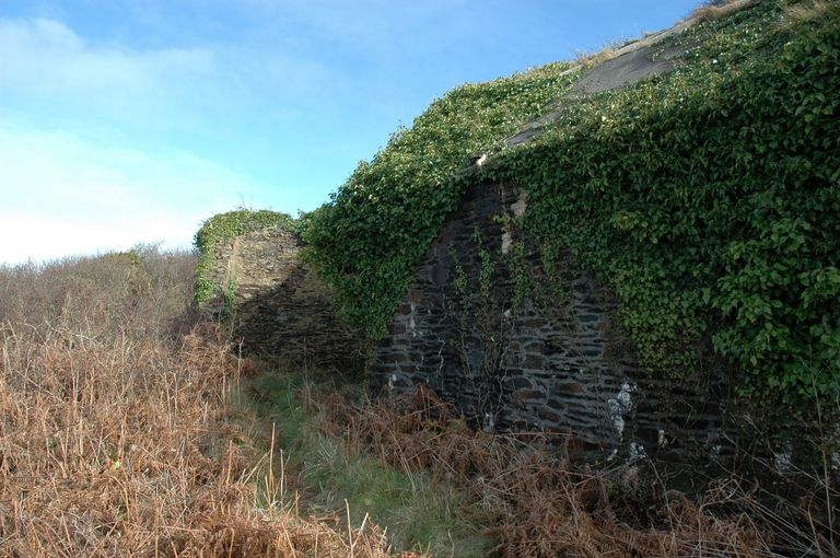 Groupe de 2 projecteurs de 60 cm et 90 cm et usine électrique, au ras de l'eau, Pointe Robert (Roscanvel),