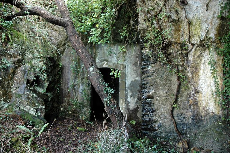 Vue de l'abri sous roc situé à proximité immédiate de l'usine électrique du groupe de deux projecteurs de la pointe RobertImmatriculation