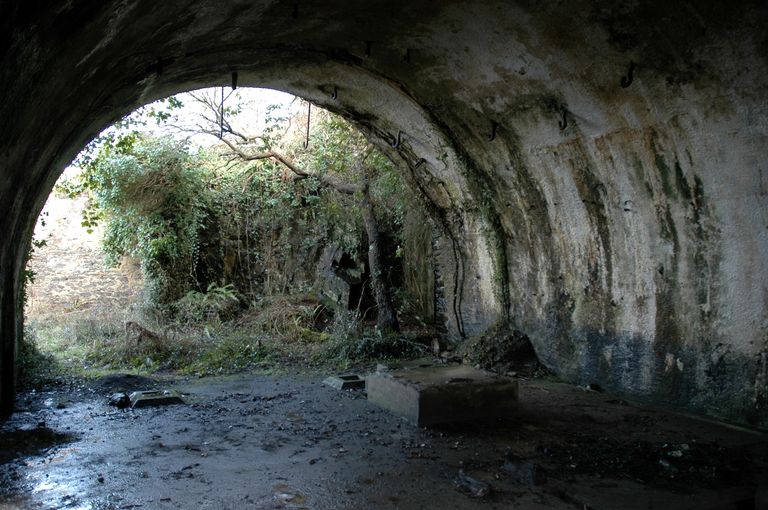 Groupe de 2 projecteurs de 60 cm et 90 cm et usine électrique, au ras de l'eau, Pointe Robert (Roscanvel),