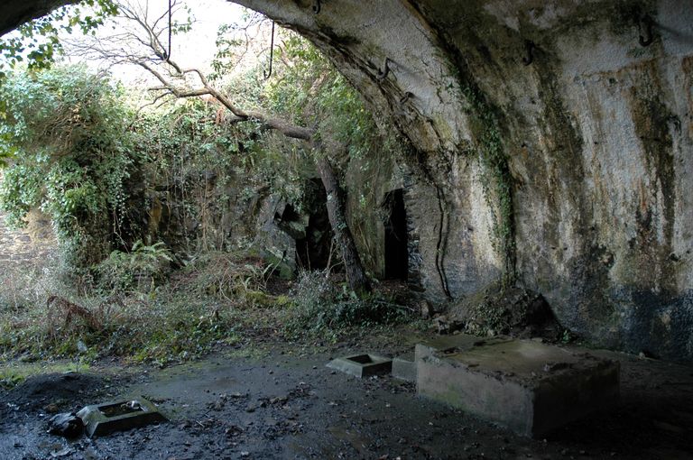 Groupe de 2 projecteurs de 60 cm et 90 cm et usine électrique, au ras de l'eau, Pointe Robert (Roscanvel),