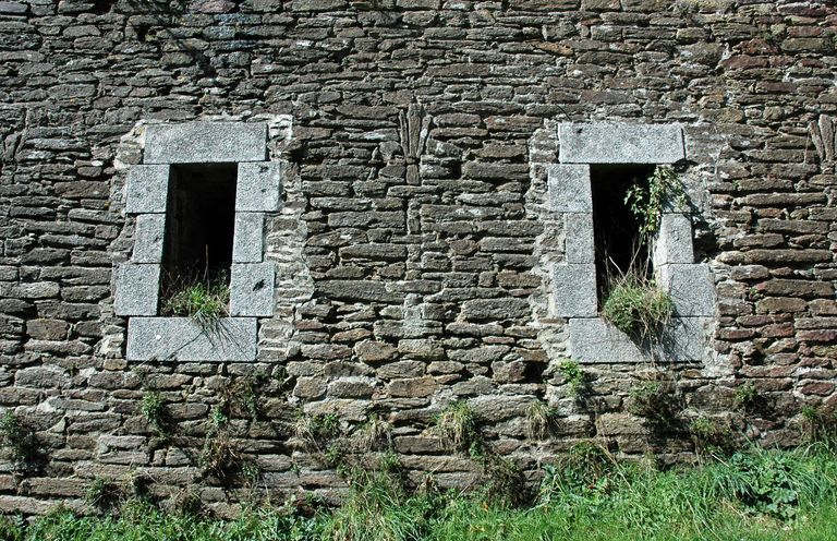 Vue du fort détaché du Questel : front de gorge percé de baies utilisables comme créneaux de mousquetterie (ouvertures des casernements)Immatriculation