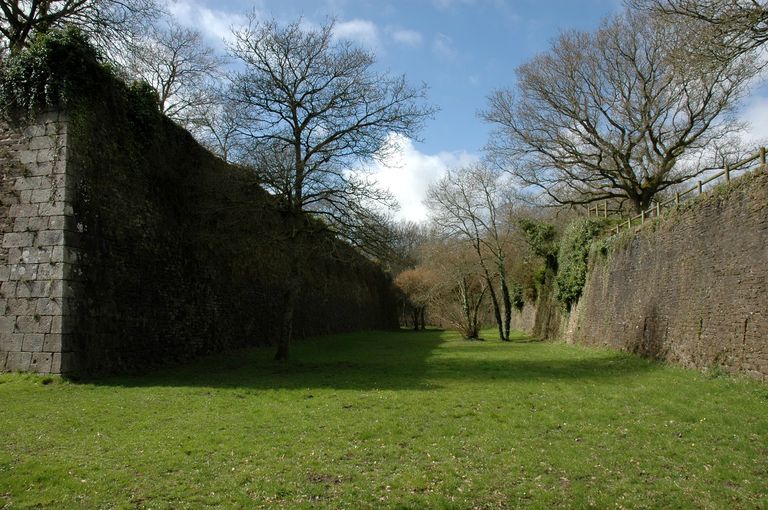 Vue du fort détaché du Questel : angle nord-est (granite de l'Aber-Ildut) et fossé sec de la face de PenfeldImmatriculation