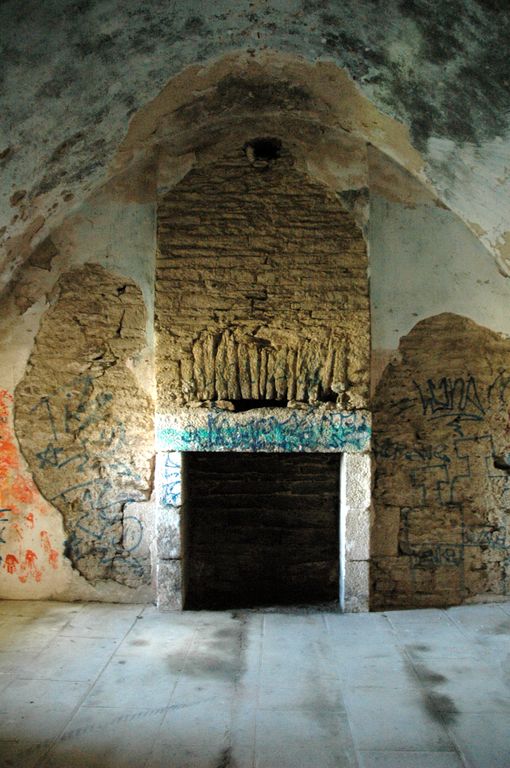 Vue du fort détaché du Questel : front de gorge sud, casemate supérieure servant au logement des officiers. La pièce -dotée d'une cheminée, comporte deux portes et, deux baies percées dans le front de gorgeImmatriculation