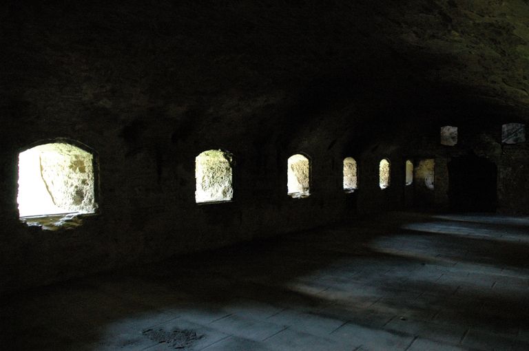 Vue du fort détaché du Questel : front de gorge sud, grande casemate inférieure dite grand souterrain, créneaux de mousquetterieImmatriculation