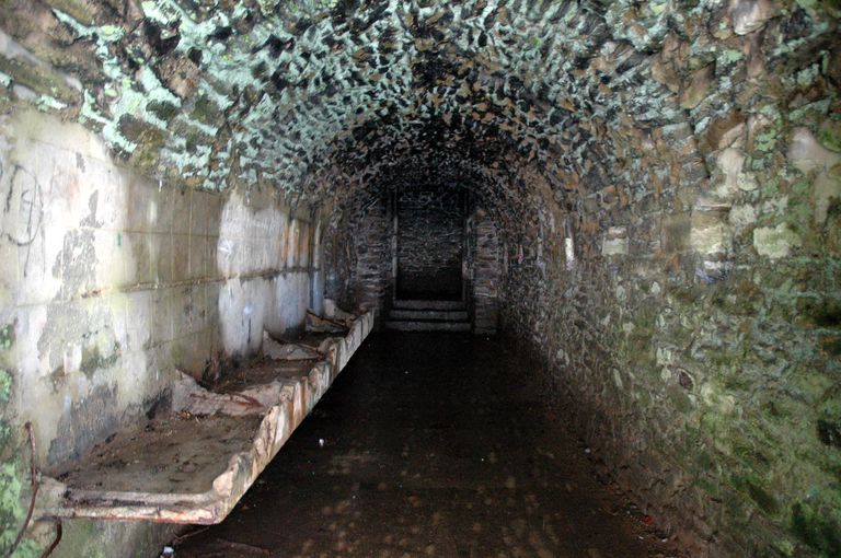 Vue du fort détaché du Questel : front de gorge, niveau inférieur, couloir d'accès aux galeries de contrescarpe transformé en sanitaire durant la Seconde Guerre MondialeImmatriculation