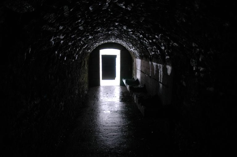 Vue du fort détaché du Questel : front de gorge, niveau inférieur, couloir d'accès aux galeries de contrescarpe transformé en sanitaire durant la Seconde Guerre MondialeImmatriculation