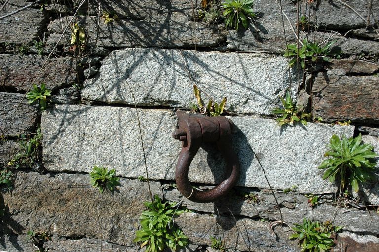 Vue du fort détaché du Questel : place d'armes centrale, manille utilisée pour hisser les canons sur affût sur la plate-forme d'artillerie (cavalier)Immatriculation