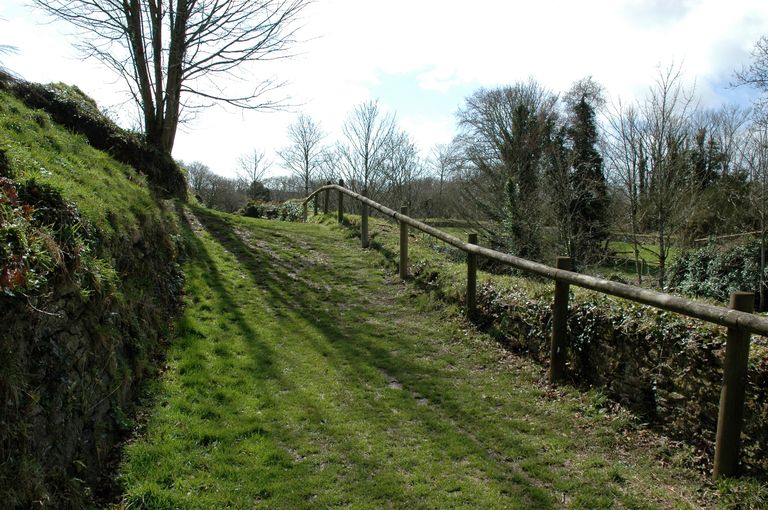 Vue du fort détaché du Questel : face des Vallons, chemin de ronde protégé par un mur défensif percé de créneaux de mousquetterieImmatriculation