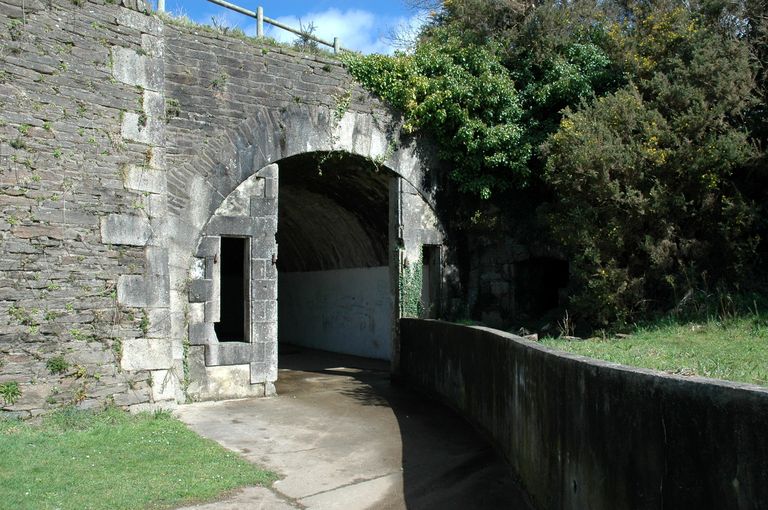 Vue du fort détaché du Questel : passage d'entrée, corps de garde des soldats, couloir d'accès aux casernements, magasin à poudre et magasin d'artillerieImmatriculation